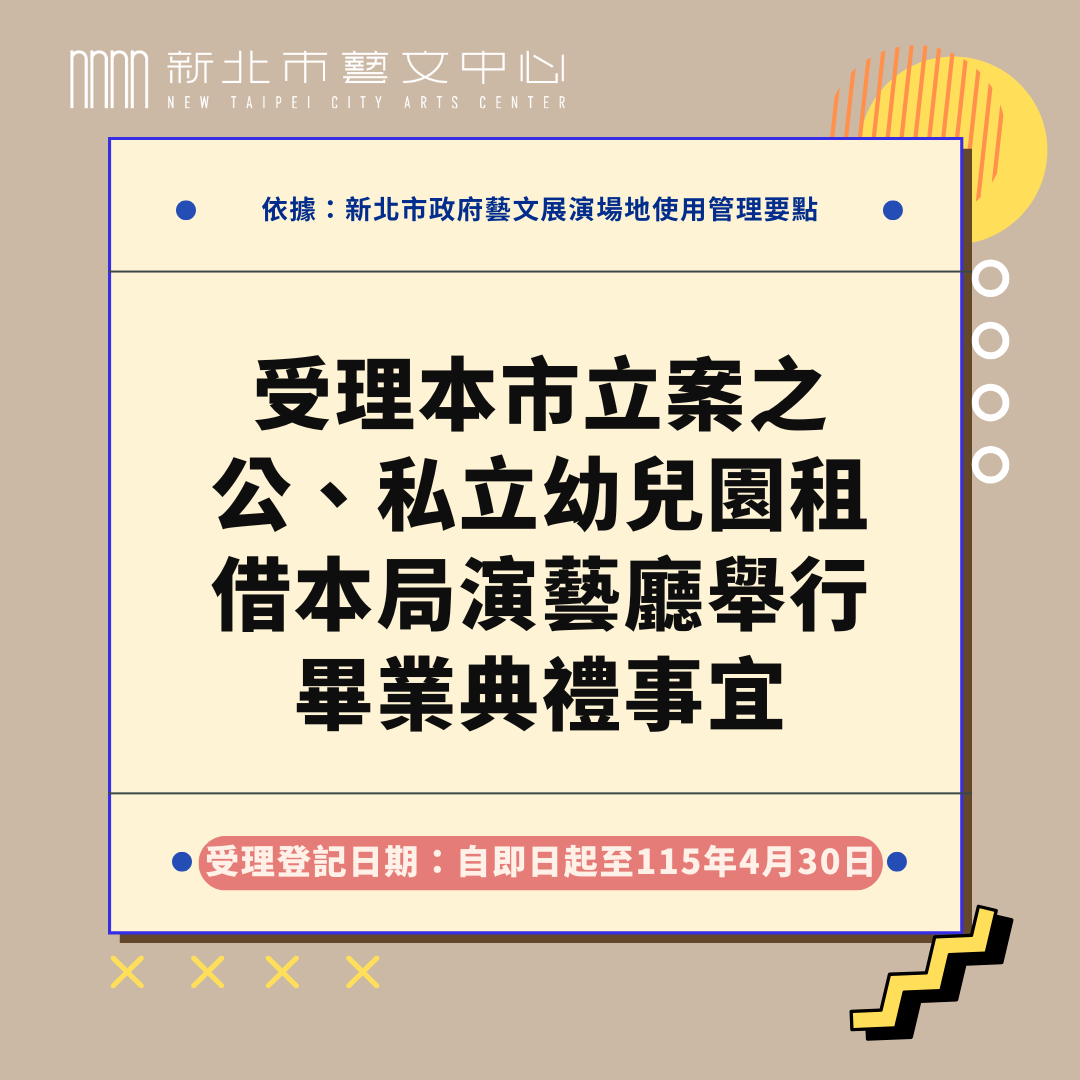 📝受理本市立案之公、私立幼兒園租借本局演藝廳舉行畢業典禮事宜